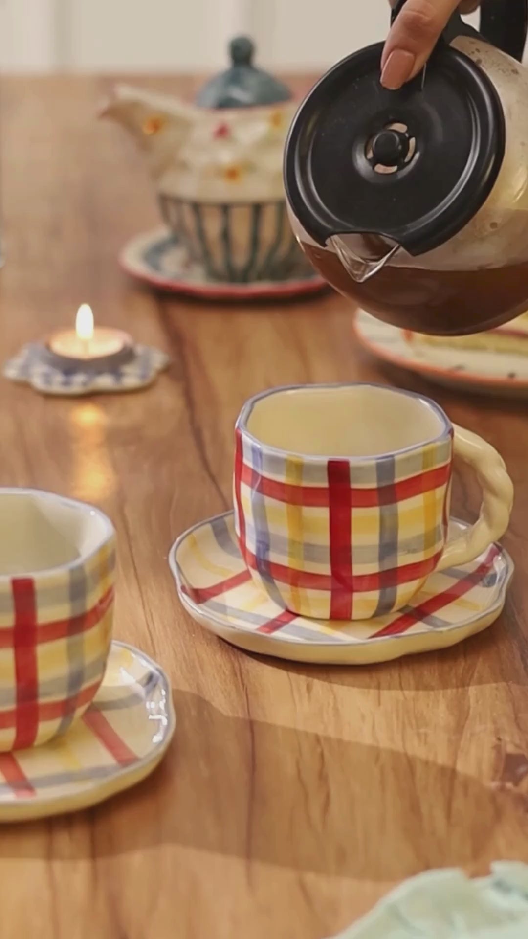 Distinctive Eye-Catching Design: Stand out effortlessly with this striking cup and saucer set featuring a bold checked print, adding a unique flair to your beverage experience.