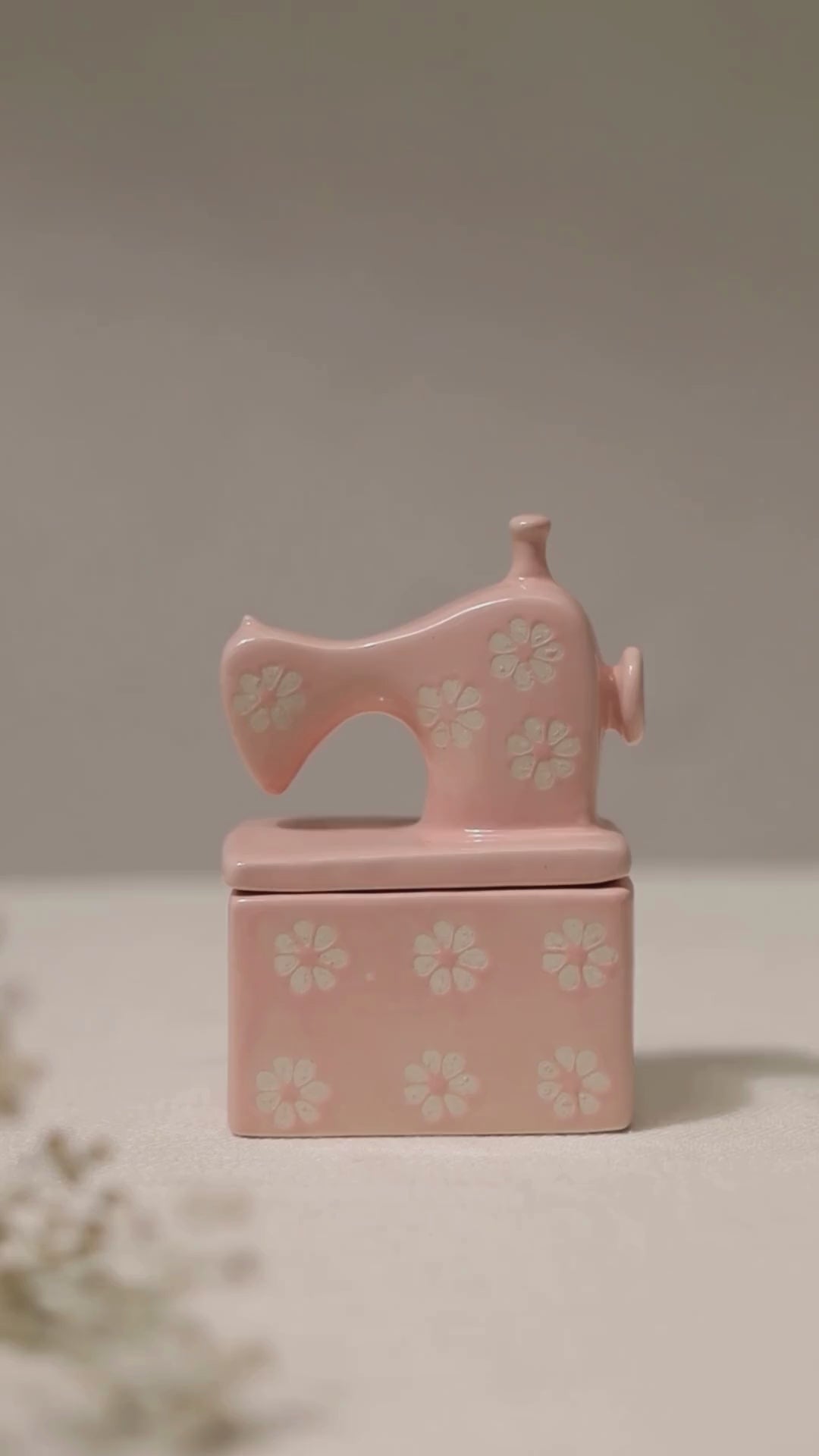 Charming Pink Sewing Machine Trinket Box