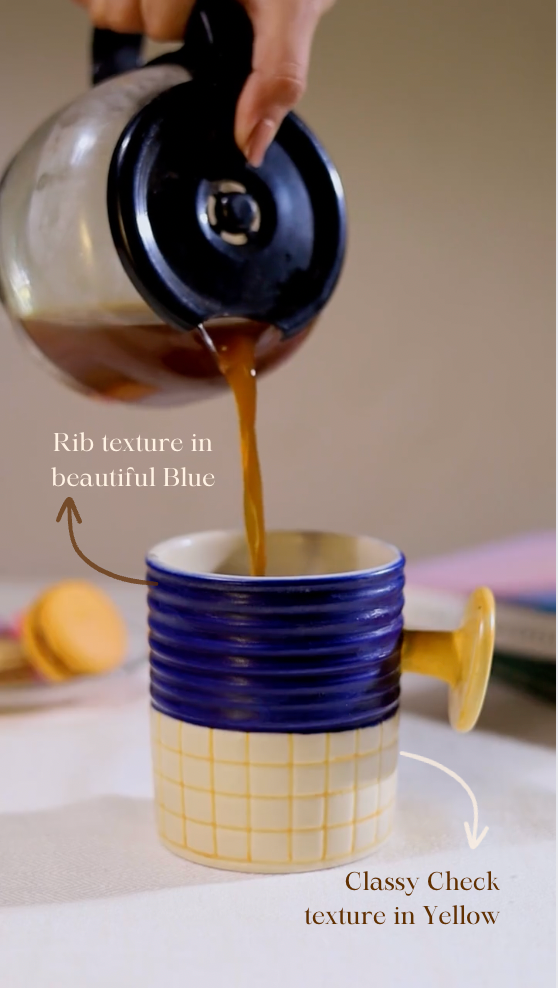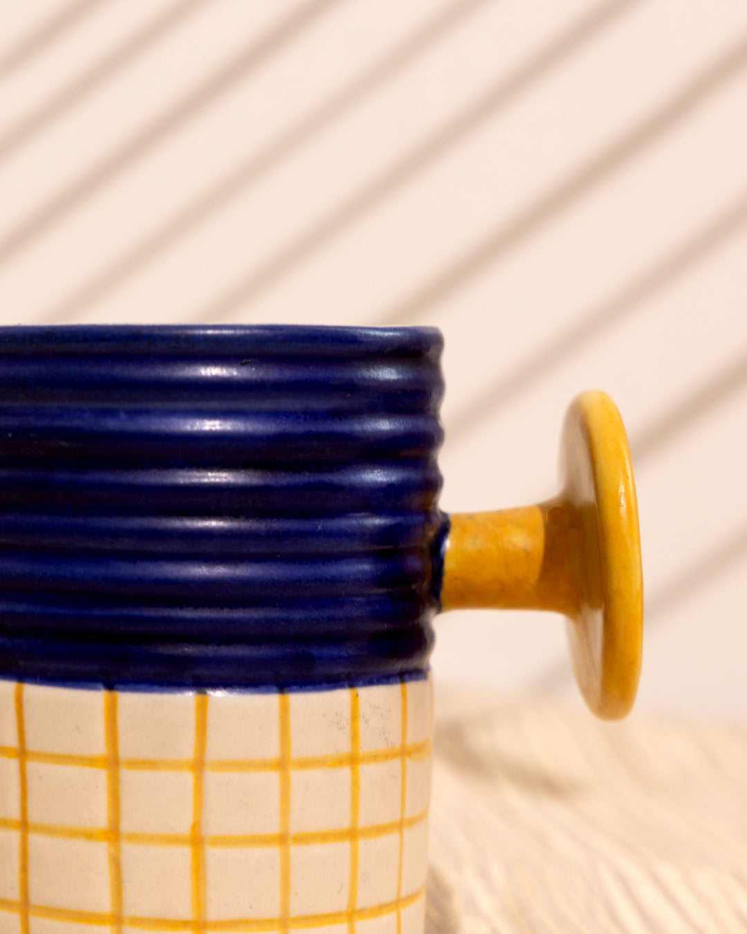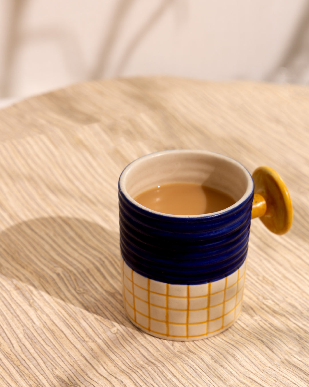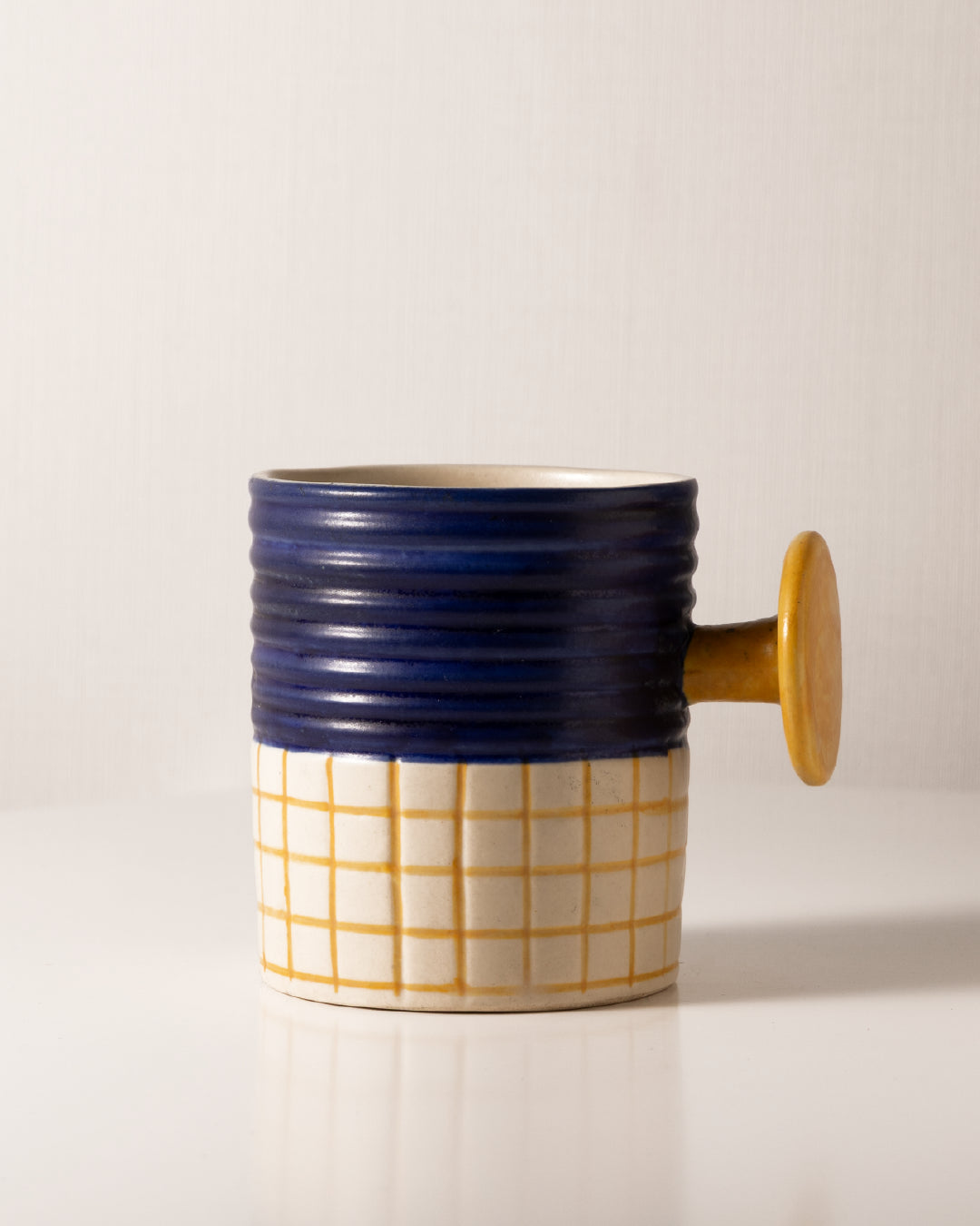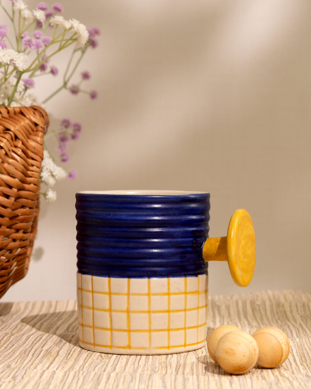 Versatile Elegance: Rich blue mug with a knob handle for versatile tableware addition.
