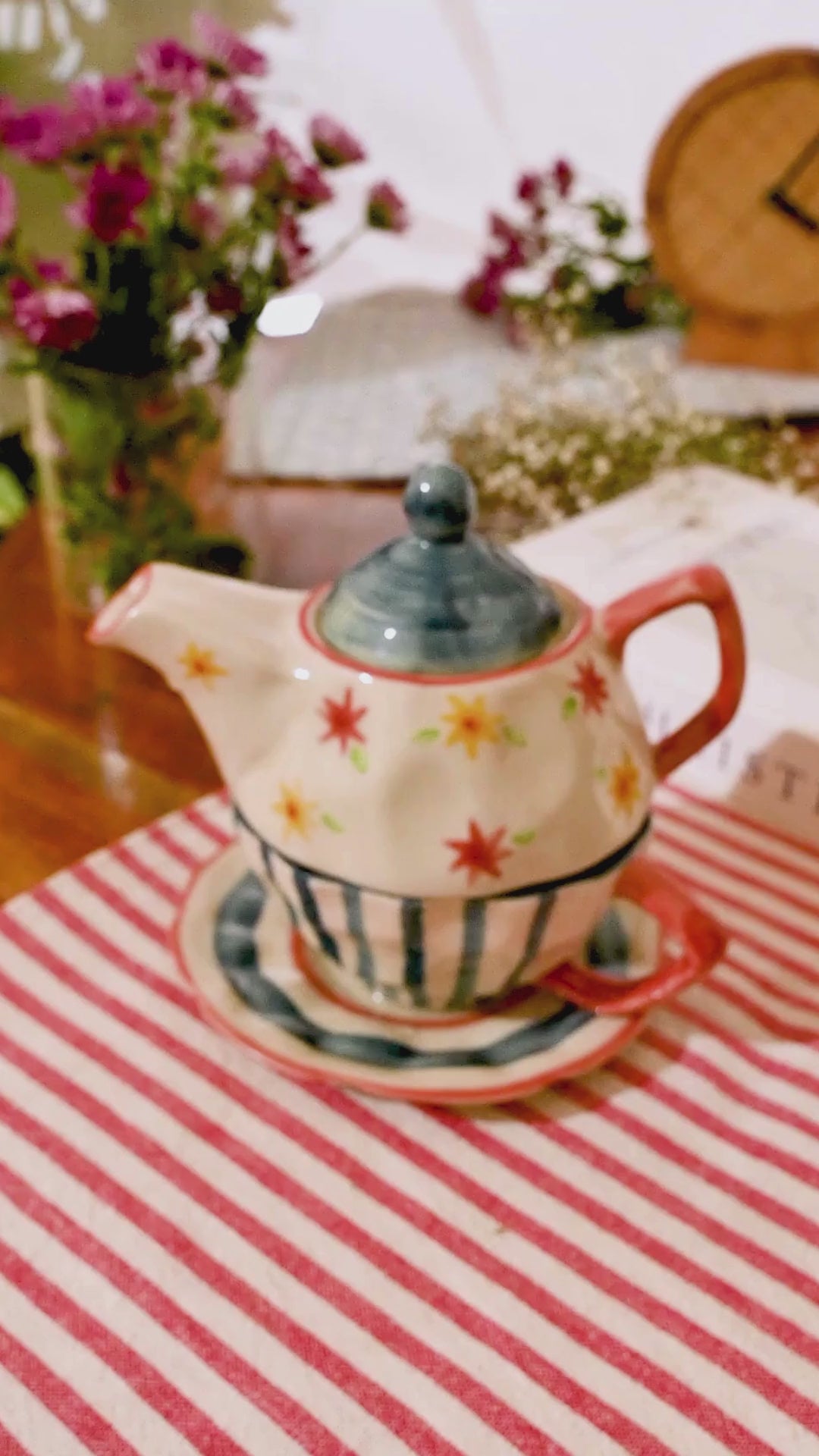 Artisan Craftsmanship: Each piece within this Handcrafted Studio Pottery Ceramic Tea-Set-for-One is lovingly hand-painted, offering an artisanal charm that makes every set a unique work of art.